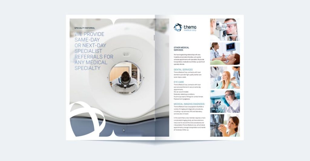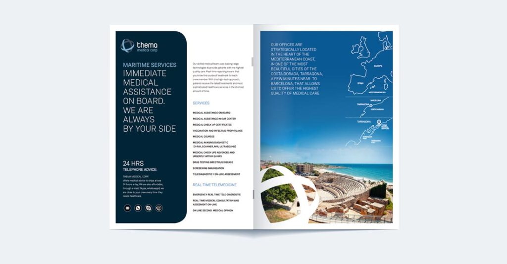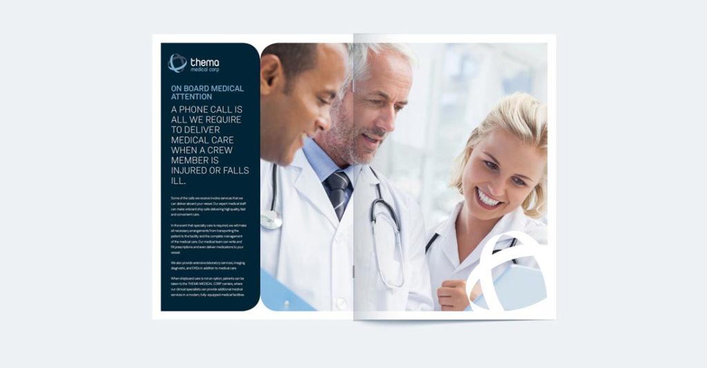 Para la empresa de servicios médicos internacionales se desarrolla una actualización de su marca, se crean contenidos gráficos para promocionar su servicio de medicina marítima y se pone en marcha una landpage especial para el público internacional.